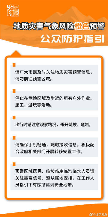北京升级发布地质灾害气象风险橙色预警